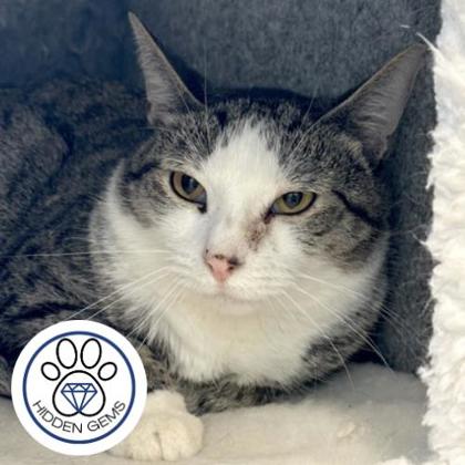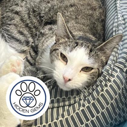 Hi friends- Tringle here. I'm searching for my new furever home. Could that be with you? I'm a simple guy who enjoys a nice nap in my cat bed, bird watching, and the company of my other feline friends. I'm quite a shy fellow and prefer to snuggle up with cats rather than humans. I do think if the right person gave me the proper time and space, I may come around. Due to my shy ways, I'd like to go to a quiet and calm home with no young kids. I think I'd really enjoy having a feline friend as long as the circumstances were right and we took things slow. If it sounds like I might be a good fit for you and your home, come down to the shelter and meet me today!