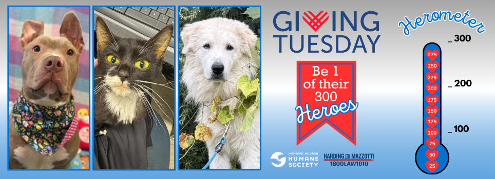 Our goal this Giving Tuesday is simple yet powerful: 300 donors. Every gift, of any amount, helps another animal know safety, healing, and love. Thanks to support from our friends at Harding Mazzotti, your Giving Tuesday gift will be matched up to a total of $2,500. Thank you for caring!