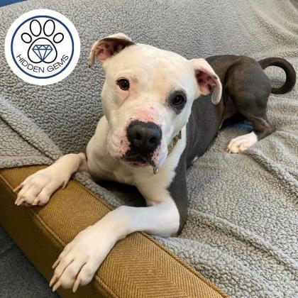 Milo is a part of our Foster-to-Adopt program. In this program we typically conduct multiple meetings with applicants to provide support and behavioral modification strategies to assist the dog with transitioning to a new home. After all parties are confident and a good match is made, the dog enters the home on a 3-week foster-to-adopt period, during which we match you with a behavior team member to help troubleshoot with any challenges that you have (usually remotely via phone/email). We know these dogs are going to be an investment to help them be their best self and we want to provide support.